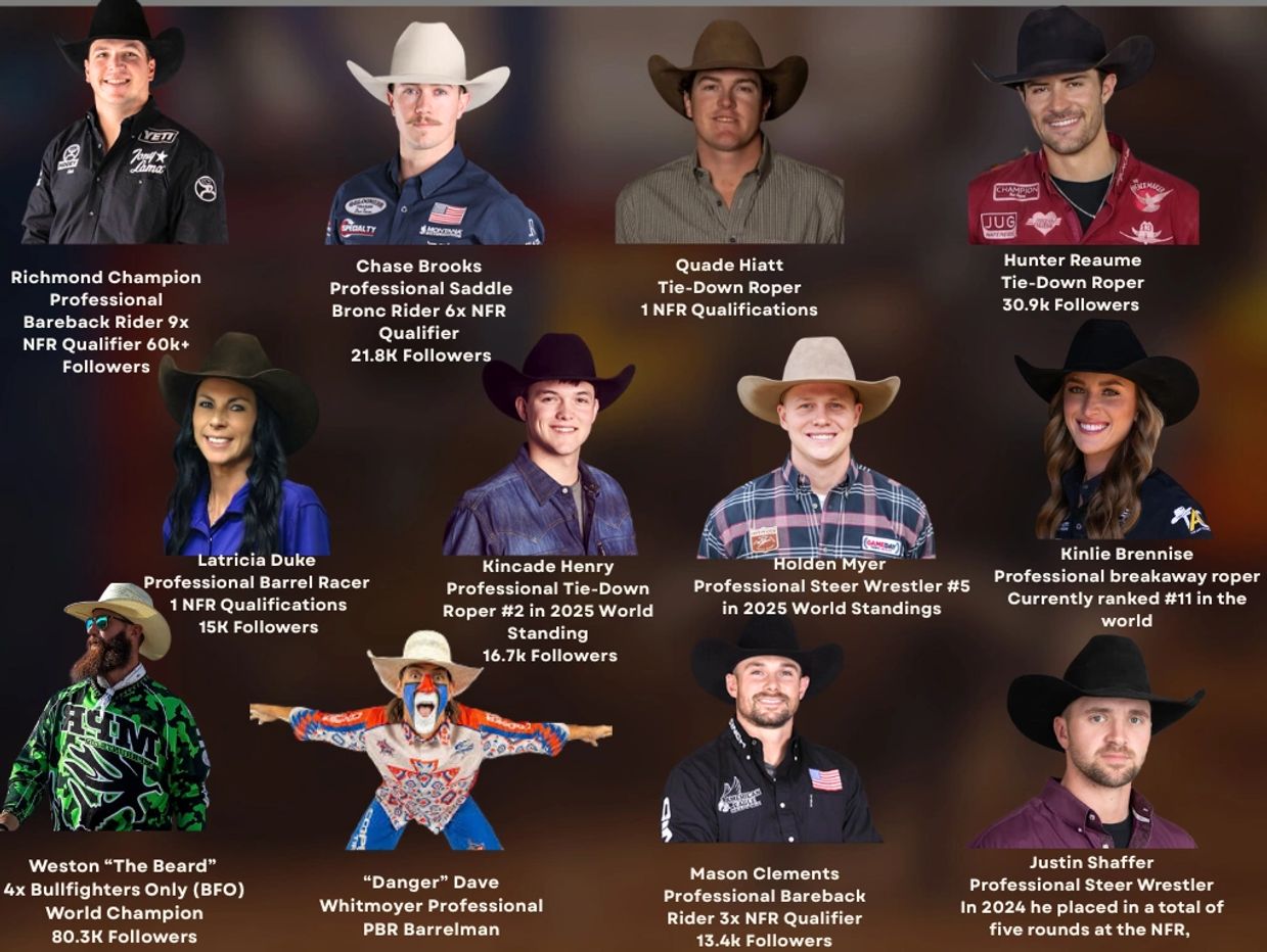 Seasoned veterans, NFR qualifiers, and household names. These athletes are already making waves in the arena—and ready to represent at the highest level outside of it too.